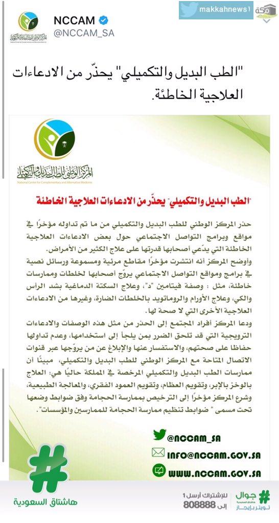 وأوضح المركز أنه انتشرت العديد من المقاطع المرئية والمسموعة وبعض الرسائل النصية في برامج شبكات التواصل الاجتماعي تروّج لخلطات وممارسات علاجية خاطئة، مثل : وصفة فيتامين “د”، وعلاج الأورام والروماتويد بالخلطات الضارة، وغيرها من الادّعاءات العلاجية الأخرى التي لا صحة لها.