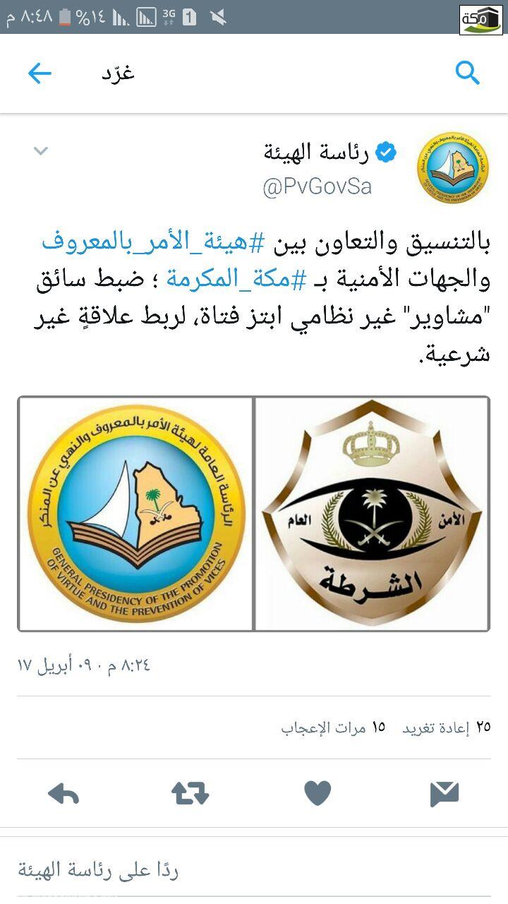 بالتنسيق والتعاون بين هيئة الأمر بالمعروف والنهي عن المنكر ، والجهات الأمنية بمكة المكرمة ، تم ضبط سائق "مشاوير" غير نظامي ابتز فتاة لربط علاقة غير شرعية.