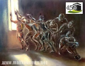 كما عبرت الفنان التشكيلية “البندري العربي” والمشاركة بعمل فني أن عملها يتحدث عن الإكتئاب الذي قد يصيب بعض الناس بسبب الظروف قد تكون ناتجة عن إراداتهم , استخدمت بالعمل الفحم والأكريليك باللون الأحمر تعبيراً عن ان بعض الحالات قد تؤدي الى الإنتحار أما الفحم فهو خانه يسهل مسحها من على ” افكانفس” ولكن قد يبقى لها اثر ولو خفيف هذا هو الحال مع البعض الأخر من المصابين بالأكتئاب قد يزول عنهم المرض ولكن يبقى له بعض الأثر في حياتهم .