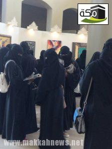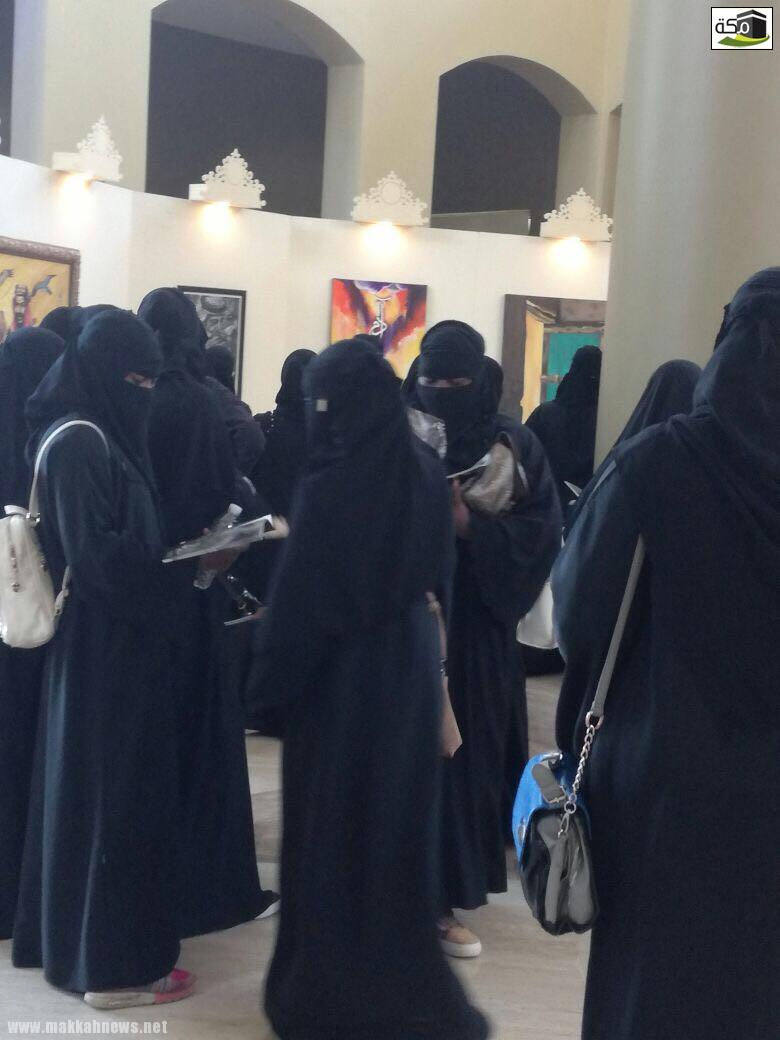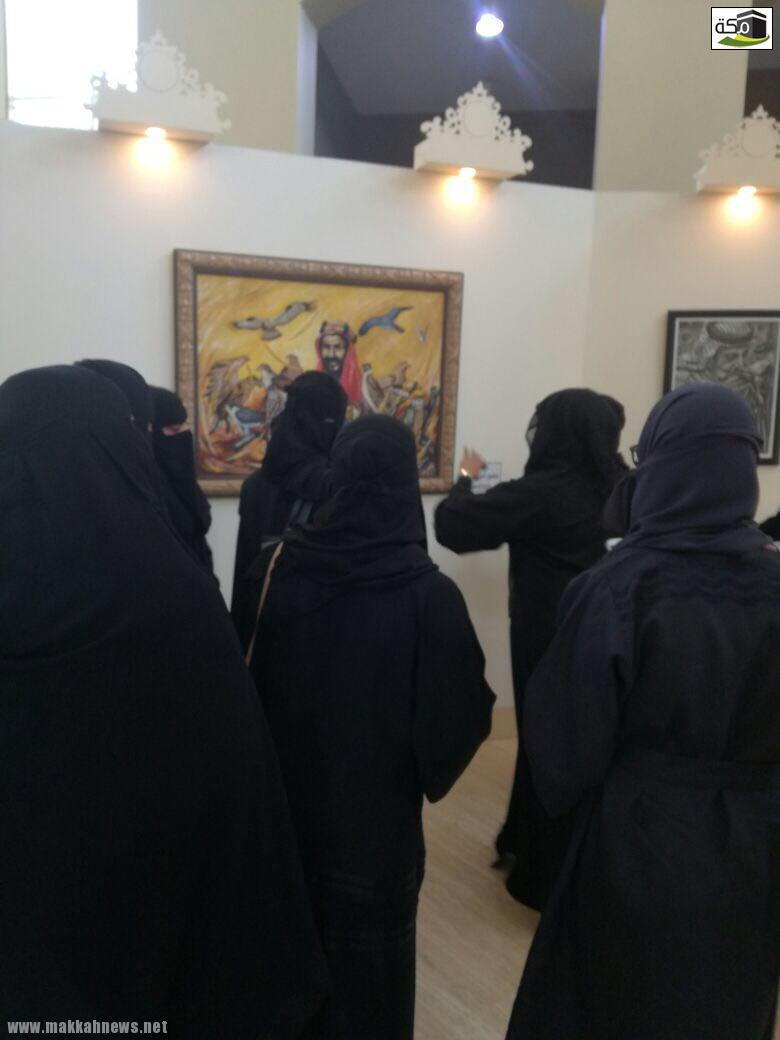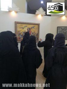 وكان في استقبالهم موظفوا وموظفات الفرع بجانب الفنانة التشكيلية فاطمة باعظيم احدى المشاركات في المعرض ؛ حيث يتم الشرح للزوار من الطلاب والطالبات عن المعرض والهدف منه والقيم التي تتناولها كل لوحة بجانب شرح الأعمال والاجابة عن تساؤلاتهم حول الأعمال التشكؤلية التي اجتذبت انتباههم ودعاهم لأخذ صور تذكارية معها .