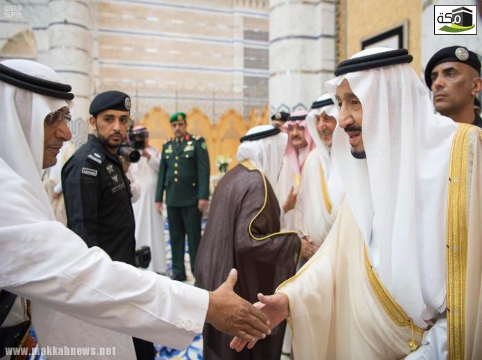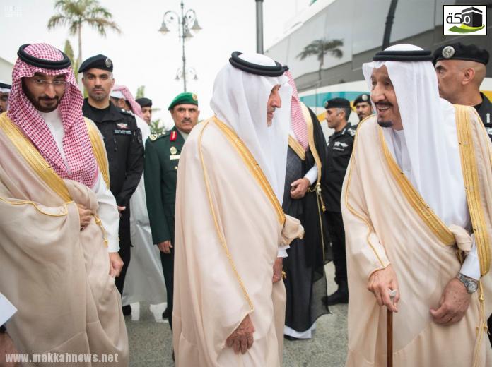 وكان في استقبال خادم الحرمين الشريفين في صالة التشريفات بالمطار الأمير عبدالله بن خالد والأمير سعود بن عبدالمحسن بن عبدالعزيز المستشار الخاص لخادم الحرمين الشريفين والأمير منصور بن بندر بن عبدالعزيز والأمير خالد بن فهد بن محمد والأمير محمد بن فهد بن محمد والأمير الدكتور فيصل بن خالد بن تركي وكيل وزارة الحرس الوطني للقطاع الغربي والأمير سعود العبدالله الفيصل والأمير متعب بن سعود بن سعد والأمير عبدالله بن فهد بن محمد والأمير نواف بن سعود بن سعد والأمير سعود بن سعد بن محمد والأمير فيصل بن سعد بن محمد والأمير نواف بن ناصر بن عبدالعزيز والأمير منصور بن خالد بن جلوي و الأمير تركي بن عبدالله بن عبدالعزيز بن مساعد والأمير محمد بن عبدالله بن خالد بن عبدالعزيز والأمير نايف بن ممدوح بن عبدالعزيز الأمير بندر بن عبدالله بن خالد بن عبدالعزيز والأمير خالد بن عبدالله بن فيصل بن تركي بن عبدالعزيز والأمير فيصل بن محمد بن سعد وكيل إمارة منطقة مكة المكرمة المساعد للحقوق والأمير سعود بن عبدالله بن جلوي وكيل إمارة منطقة مكة المكرمة للشؤون الأمنية والأمير تركي بن عبدالله بن سعود والأمير فيصل بن نواف بن عبدالعزيز والأمير عبدالعزيز بن فيصل بن عبدالمجيد بن عبدالعزيز والأمير تركي بن فيصل بن عبدالمجيد بن عبدالعزيز والأمير فواز بن بندر بن عبدالعزيز والأمير بدر بن نواف بن سعود بن سعد والأمير تركي بن طلال بن ممدوح بن عبدالعزيز.