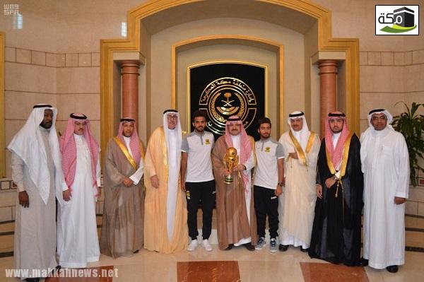 استقبل صاحب السمو الملكي الأمير مشعل بن ماجد بن عبدالعزيز محافظ جدة، بمكتبه اليوم، رئيس نادي الاتحاد حاتم باعشن، وأعضاء مجلس الإدارة، والجهاز الفني والإداري، وعدد من اللاعبين، الذين قدموا للسلام على سموه، بمناسبة تتويج نادي الاتحاد بكأس ولي العهد لكرة القدم .
