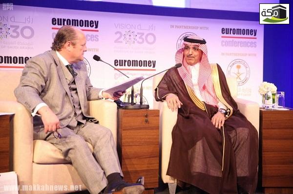 عقب ذلك؛ جرت جلسة نقاش مع معالي الأستاذ محمد الجدعان من قبل كريستوفر غارنيت أحد المستشارين الدوليين لمؤسسة “يوروموني العالمية”؛ تناولت موضوعات محورية كمسؤوليات وإجراءات وزارة المالية بعد تولي معاليه قيادتها، وكيفية التوازن الذي تقوم به الوزارة بين مساري التقشف والحاجة إلى النمو، وكذلك مسؤولية الوزارة في تعزيز الوظائف، خاصةً الوظائف الصغيرة والمتوسطة الحجم في القطاع الخاص، إلى جانب إصدار الديون السيادية السعودية.