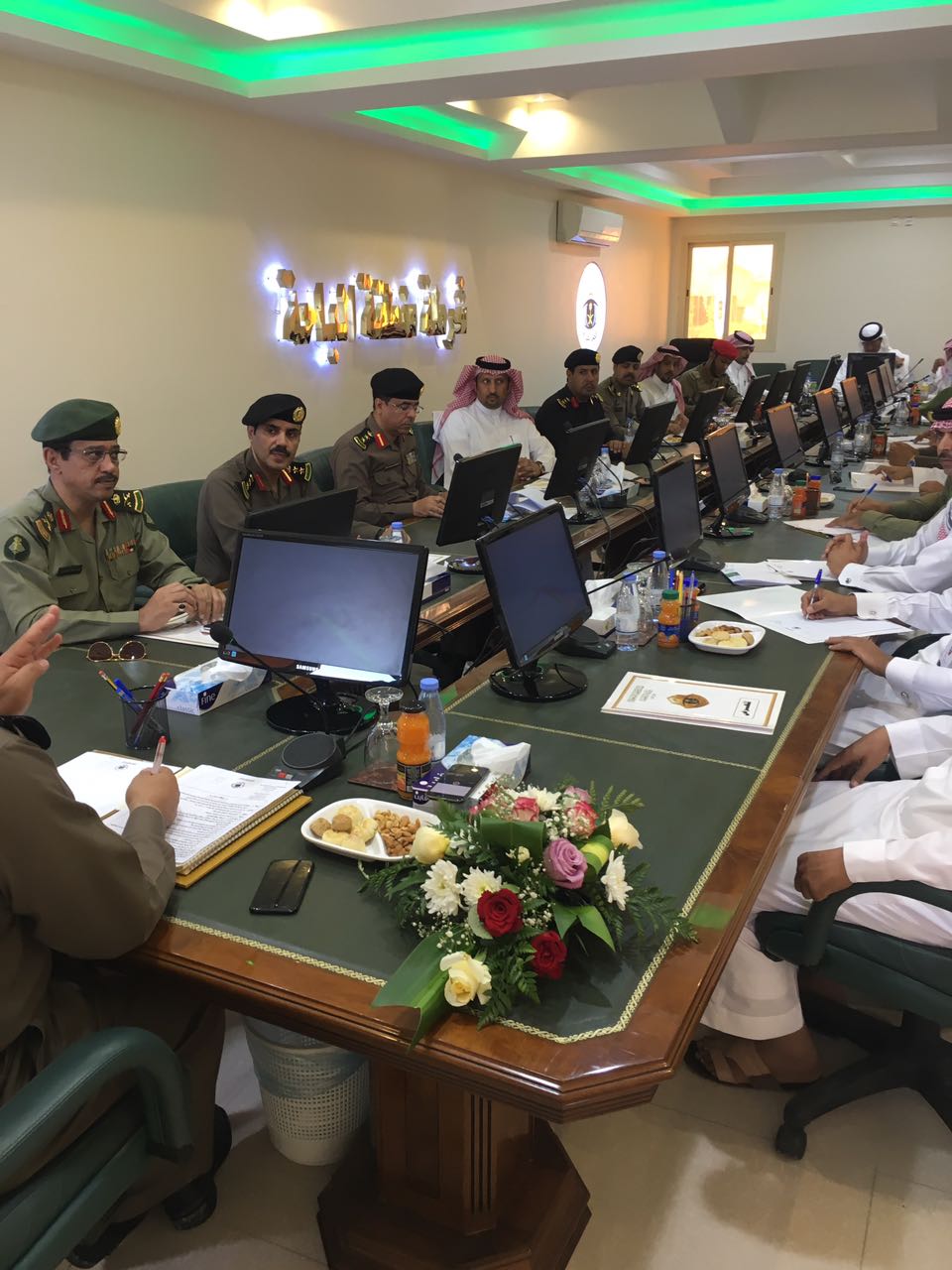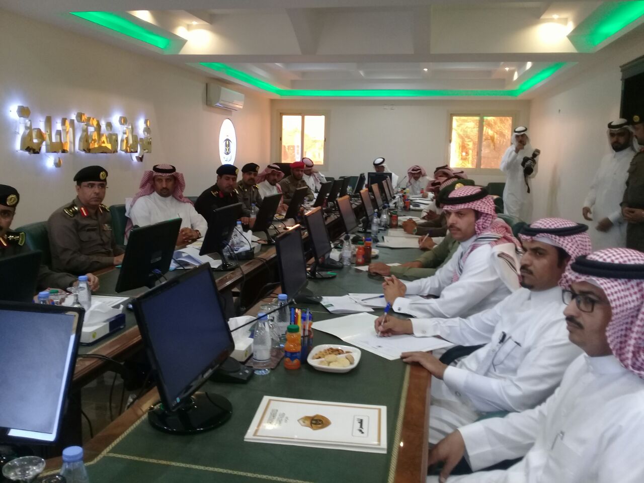 عقد اللواء ، علي بن محمد آل هادي ، مدير شرطة منطقة الباحة صباح اليوم الخميس ١٥ /٨ / ١٤٣٨ بقاعة الإجتماعات بشرطة المنطقة اجتماعاً موسعاً للجهات الأمنية والإدارات الحكومية المعنية بتنفيذ الخطة الوطنية الشاملة لتعقب وضبط مخالفي نظام الإقامة والعمل وأمن الحدود “وطن بلا مخالف” وهدف الإجتماع لتدارس المهام والمسؤوليات لكل الجهات ذات العلاقة، ووضع خطة عمل خاصة تنبثق من الدليل الأجرائي للحملة الوطنية المشار إليها.وتخلل الإجتماع مناقشة الخطط التنفيذية والإجرائية للمرحلة القادمة، وحث آل هادي الجهات الميدانية لمباشرة مهامها على مدار الساعة، وذلك بالتنسيق مع الجهات المشاركة،