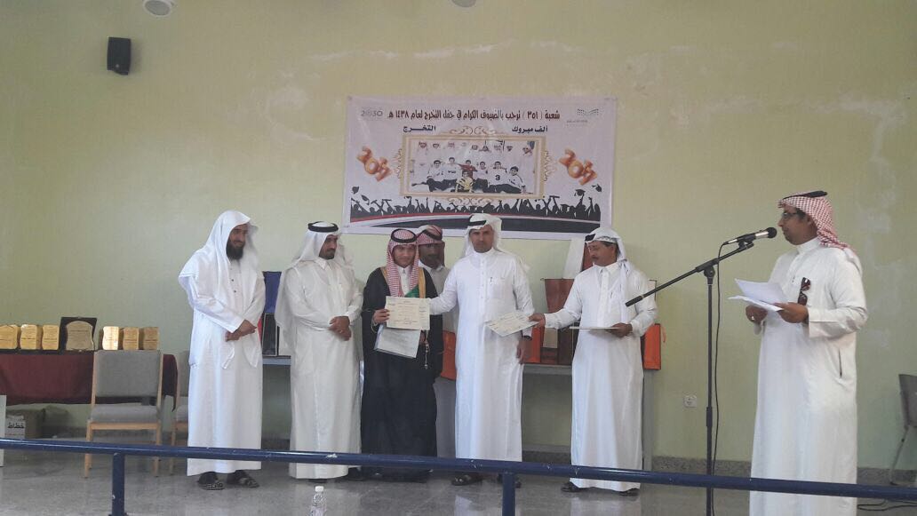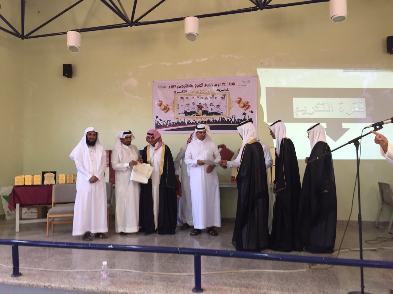 وفي الختام قام قائد المدرسة بتوزيع الجوائز على الطلاب والمعلمين ثم ألتقطت الصور التذكارية للخريجين مع معلميهم .