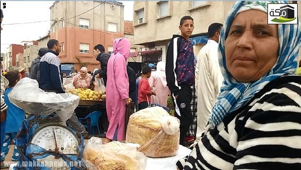 في منطقة أيت ملول أيضا باعة يؤثثون الأرصفة، ” أحمد” رجل متقاعد استغل شهر رمضان الكريم واشترى عربة يدوية، وأصبح بين عشية وضحاها بائعا للفواكه، وفي المنطقة ذاتها نساء يجلسن إلى الأرض وأمامهن سلعة جد قليلة بالكاد تبصرها، وهي بعض القطاني، خاصة الحمص الذي تضعه هؤلاء النساء في الماء ويكثر عليه الإقبال.