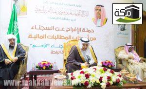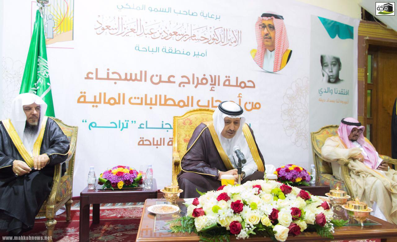 دشن صاحب السمو الملكي الأمير الدكتور حسام بن سعود بن عبدالعزيز أمير منطقة الباحة مساء اليوم بقاعة الامير فيصل التعليمية بمدينة الباحة ، حملة التبرعات لصالح سجناء المطالبات المالية بسجون المنطقة ومحافظاتها .
