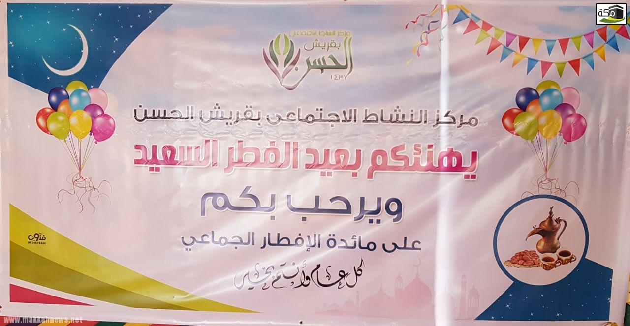 أقام مركز النشاط الإجتماعي بقريش الحسن إفطاراً جماعي في أول أيام عيد الفطر المبارك لأهالي قرية “قريش الحسن” والمقيمين فيها، وبعد الإنتهاء من صلاة العيد تبادل الأهالي التهاني والتبريكات بهذه المناسبة السعيدة .