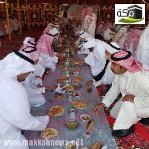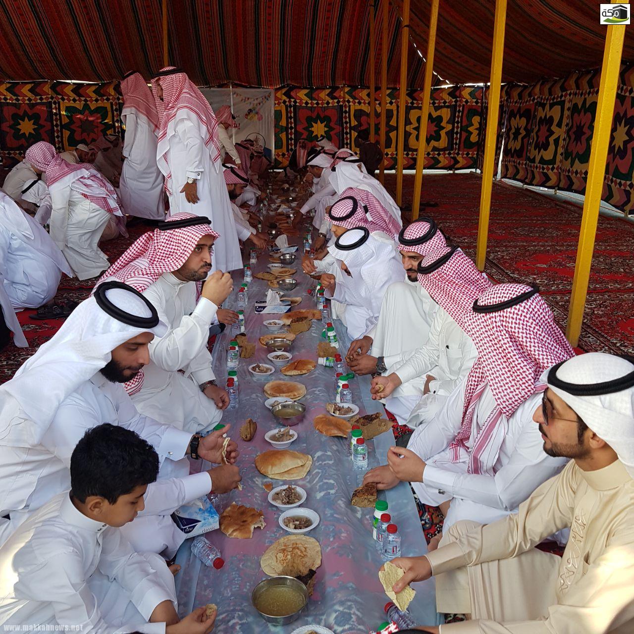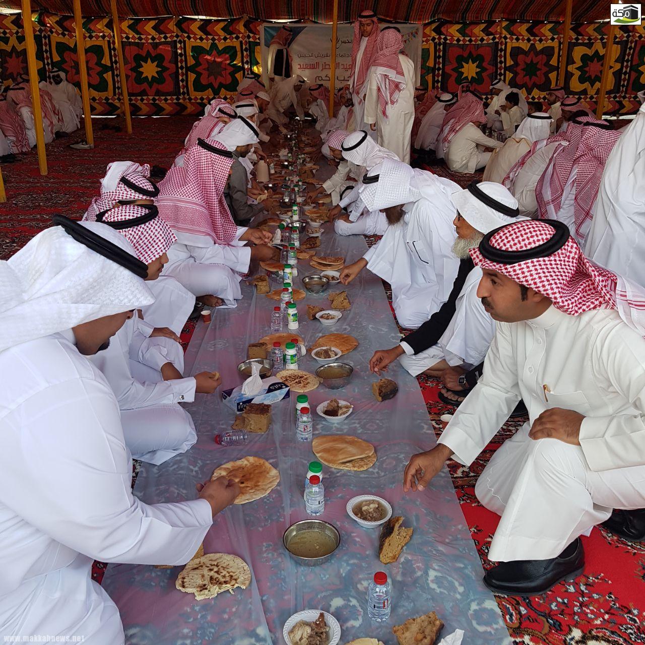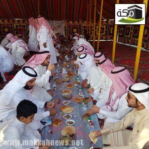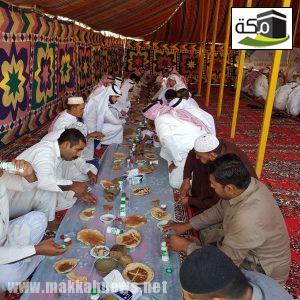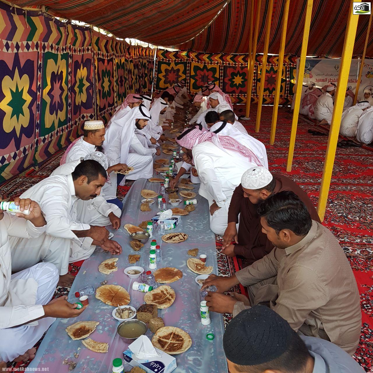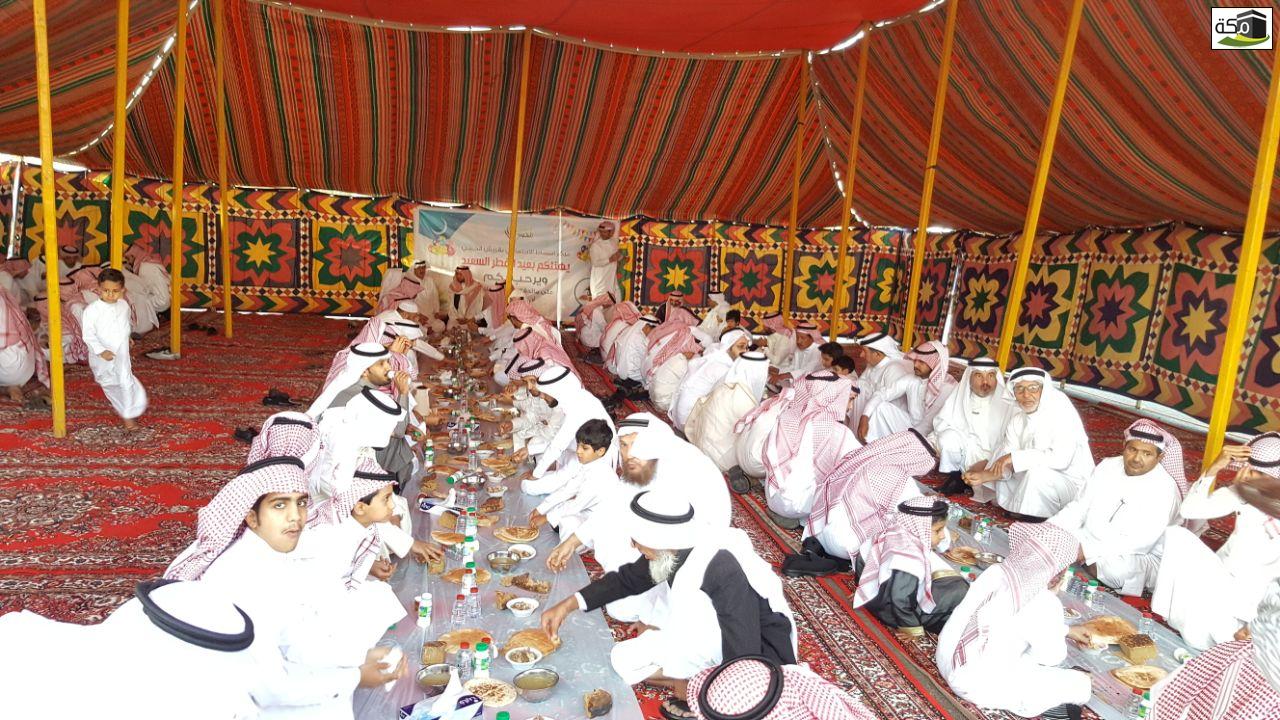 ثم تناول الجميع طعام الإفطار في الخيمة المُعدة لهذه المناسبة في مشهد تسوده المحبة والتراحم حيث اجتمع كبار السن مع أبنائهم وأحفادهم وأبناء أحفادهم والفرحة تغمرهم، وتعلو محياهم ابتسامات الفرح والسرور .