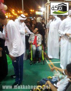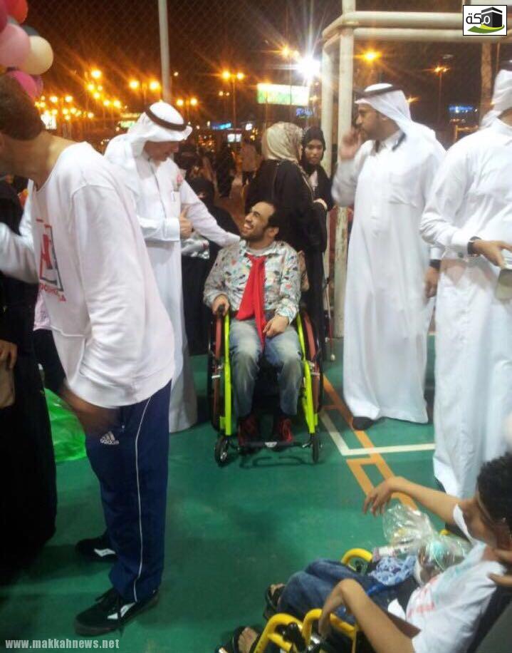 ضمن مهرجان رائع وبرعاية كريمة من منتجع مكارم النخيل أحتفل عدد 100 أسرة من ذوي الإعاقة بعيد الفطر المبارك بالتنسيق مع مركز الملك عبد الله بن عبد العزيز لرعاية الأطفال المعوقين بجدة ، وبدأ حفل المعايدة الساعة 11 صباحاً بإستقبال الأسرة والترحيب بهم بالمرطبات والعصائر الخفيفة من قبل فريق الإستقبال برئاسة الأستاذ / أمير مدير عام منتجع مكارم النخيل و د/ زهير ميمني مدير مركز الملك عبد الله بن عبد العزيز لرعاية الأطفال المعوقين بجدة ثم تم توجيه الأسر للفلل التي خصصت للضيافة بالقرب من الشاطئ وفي الساعة 1 ظهرا تمت دعوة ذوي الإعاقة وأسرهم للمطعم لتناول طعام الغداء الذي أحتوى على العديد من الأطعمة المحلية والعالمية اللذيذة وفي الساعة 3 ظهرا تمت دعوة الجميع الي الخيمة الشاطئية المكيفة حيث أستمتع الجميع بعروض خفة وعدد من المسابقات وعروض المهرجين التي لاقت إستحسان الأطفال وأسرهم وبعد ذلك تم عرض أحد الأفلام الكرتونية التي أستمتع بها الأطفال وأسرهم وفي الساعة 7 مساءً تمت دعوة الجميع لطعام العشاء الذي أحتوى على العديد من الأصناف المحلية والعالمية اللذيذة وفي الساعة 9 مساءً بدأت الفقرات المسرحية على مسرح منطقة المرينا وقد لاقت العروض المسرحية وإستعراض الأزياء الكرتونية إستحسان جميع الحاضرين.
