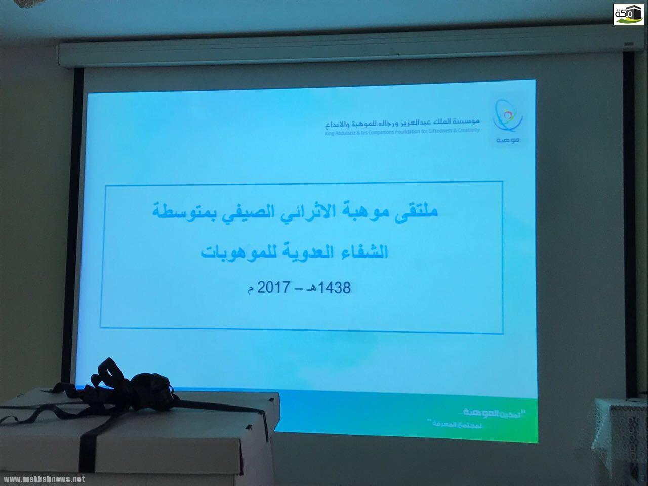 ينطلق بالإدارة العامة للتعليم بمنطقة مكة المكرمة ممثلة بإدارة الموهوبات الملتقى الصيفي ٢٠١٧ للموهبة بمدرسة الموهوبات الشفا العدوية، بإشراف ودعم من مؤسسة الملك عبدالعزيز ورجاله للموهبة والإبداع ( موهبة ) وبمشاركة فريق من إدارة الموهوبات بتعليم مكة وفريق من مدرسة الشفاء العدوية للموهوبات. وذلك خلال الفترة من ٢٢ / ١٠ إلى ١٣ / ١١ / ١٤٣٨ هـ لمدة ثلاثة أسابيع؛ حيث تتنوع المهارات التي ستتعرض لها الطالبات في الجوانب العلميه والتقنية ومهارات الروبوت إضافة إلى الجوانب الترفيهية والقيادية.