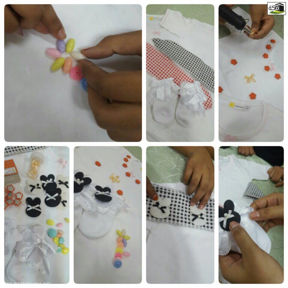 برنامج تزيين ملابس الأطفال وذلك ضمن المسارين الترفيهي والوظيفي، بهدف تزيين وتنسيق ملابس الأطفال بالخرز والورود باستهلاك الخامات المتوفرة البسيطة حيث جرى خلاله التعرف على الخامات وتنمية الذوق العام واكتساب مهارات و تدريب الطالبات على التنسيق والتزيين بالخامات المتوفرة في البيئة وتنمية الذوق العام.