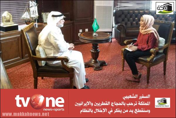 وعن الاتفاق الذي تم بين الحكومتين السعودية والإيرانية مؤخرا حول عودة الحجاج الإيرانيين لأداء فريضة الحج هذا العام ، أجاب السفير الشعيبي أن المملكة بلد إسلامي يقصده المسلمون من كل مكان وعلى مدار العام ولا يمكن بأي حال من الأحوال ان يستطيع أي شخص منع أي مسلم من أداء أي فريضة من الفرائض المشروعة.