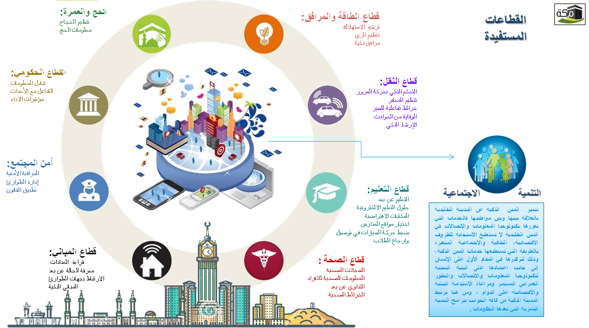 من ناحية أخرى أكد الخبير بأن دور المدن الذكية في تحقيق رؤية المملكة 2030 يتماشى مع التوجهات الاستراتيجية لحكومة خادم الحرمين الشريفين والتي يشكل أحد أهدافها رفع المكانة العالمية لمدن المملكة وجعلها أكثر تطوراً وقابلية للتوسع الحضاري والمعيشي ونظراً لخصوصية العاصمة المقدسة التي هي محط أنظار العالم وما تضمنته الرؤية من مضاعفة حجم استيعاب زوار هذه المدينة والارتقاء في مستوى الخدمات المقدمة لهم مما يشكل تحدياً أمام الجهات المعنية بإدارة المدينة لمواكبة هذه الخطة .