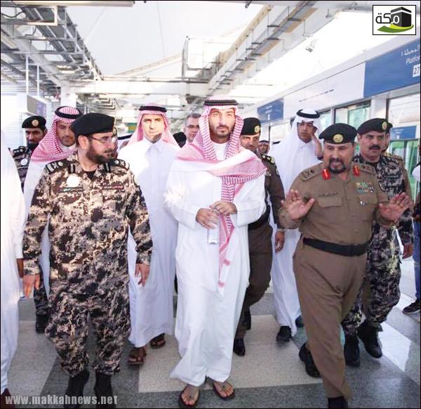 وفي بداية الجولة، استقل نائب أمير مكة قطار المشاعر الذي تشرف على تشغيله هيئة تطوير منطقة مكة المكرمة بمشاركة قوات أمن المنشآت، ووقف ميدانياً على مركز التشغيل والتحكم والصيانة والتخزين، ثمّ انطلق سموه إلى محطة قطار المشاعر (عرفات 3 ) للوقوف عليها والتأكد من جاهزيتها.