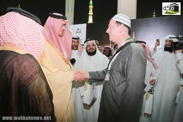 كما أهدى سموه بعض من زوار المسجد النبوي من الحجاج عبوات ماء زمزم وحقائب بها نشرات توعوية عن مناسك الحج والعبادات وآداب زيارة المسجد النبوي.