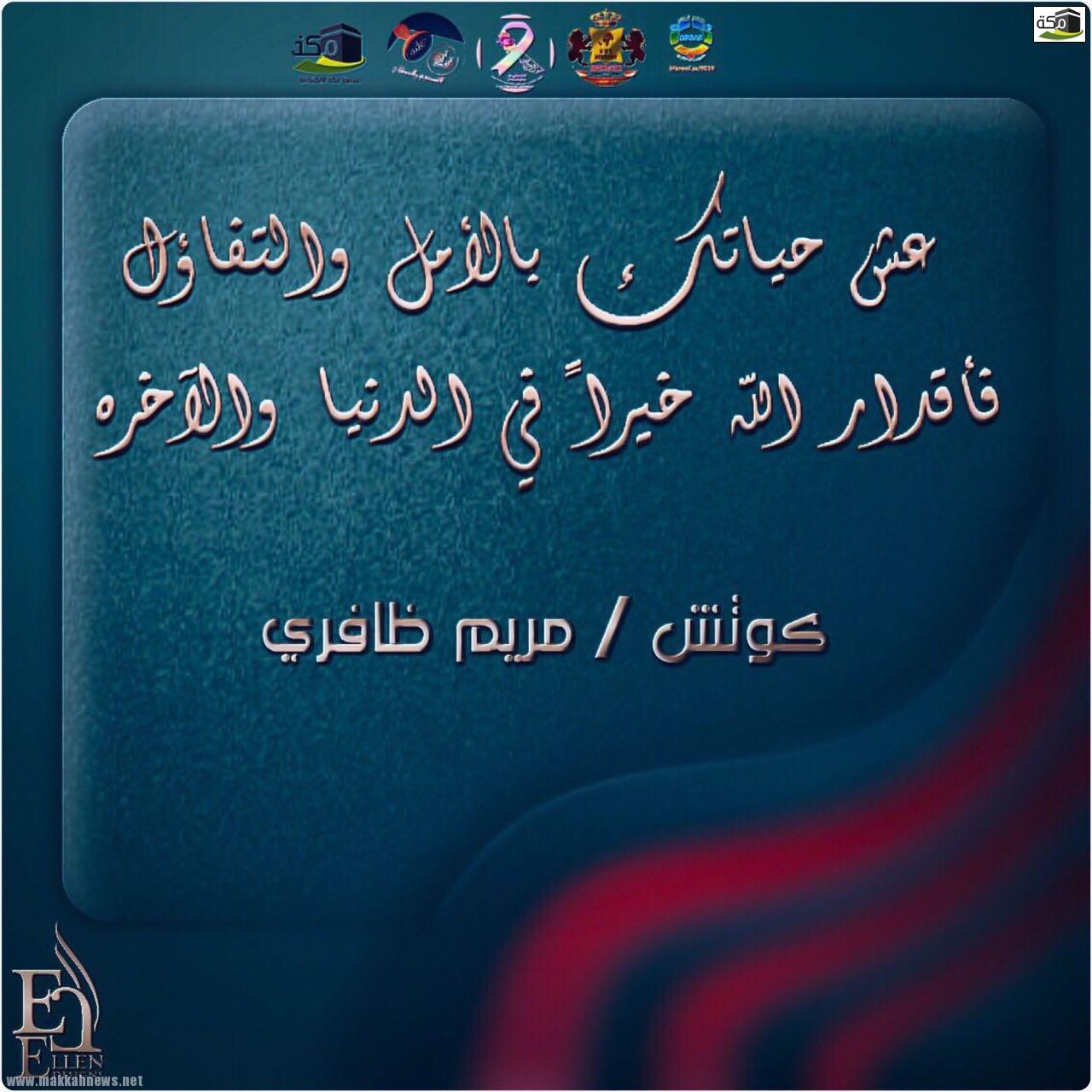عجزت ان أسطر لك اعذب البنان فاودع الله فيك اعذب لسان ليخط بأجمل الكلمات تحمل في طياتها هرمون الحياة واكسير العيش وهو التفاؤل والأمل وقبلها حسن الظن بالله