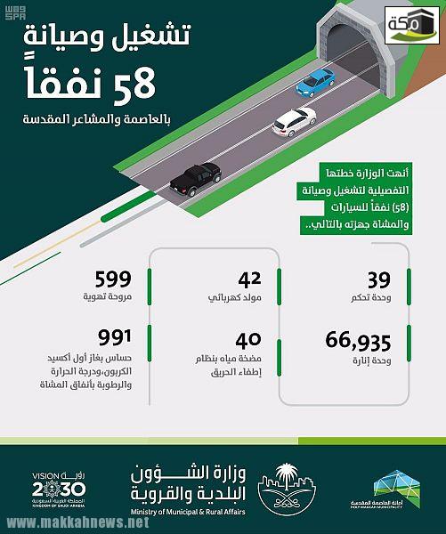 “البلديات” تنتهي من تشغيل وصيانة 58 نفقاً بالعاصمة والمشاعر المقدسة