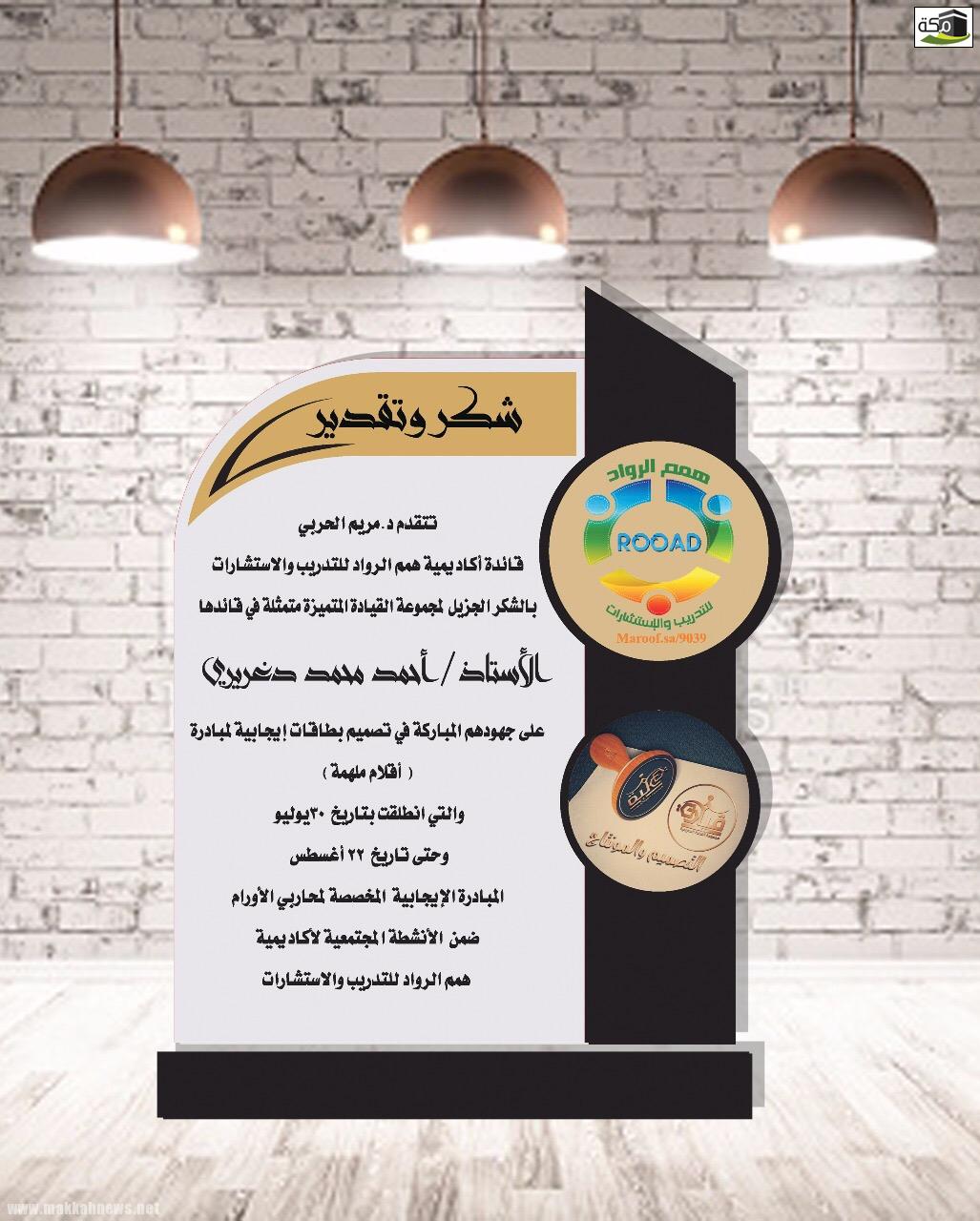 بالشكر الجزيل لمجموعة القيادة المتميزة متمثلة في قائدها الأستاذ/أحمد محمد دغريري