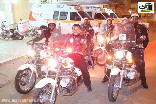 وأوضح رئيس فريق الدراجات النارية أيمن برسالي أنه تم إدراج الدراجات النارية ضمن الخطة العامة للهيئة لتكون دعامة للخدمات الاسعافية التي تقدمها الهيئة خلال موسم الحج، حيث تم تخصيص بعض المواقع لها حسب الأهمية منها (6) نقاط تمركز حول المنطقة المركزية للمسجد الحرام خلال أوقات الذروة بعدد (15) فرقة إسعافية تعمل على مدار 24 ساعة .