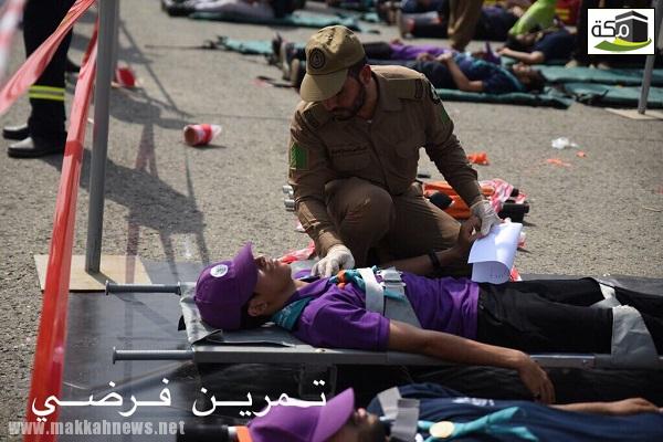 وتمكنت قوات الدفاع المدني خلال الفرضية التي تم تنفيذها في مشعر عرفة والتي شهدها مدير عام الدفاع المدني من الانتقال السريع إلى موقع الحدث، وتقييم الموقف وإيضاح الصورة العامة عن الحدث وتطبيق الخطة العامة للطوارئ بالحج بمشاركة جميع الجهات الحكومية المعنية بتنفيذ أعمال الدفاع المدني في حالات الطوارئ مثل الهلال الأحمر والأمن العام والمرور وغيرها، وذلك من خلال تطبيق خطة الإطفاء والإخلاء الطبي في موقع الحادث الافتراضي، وكذلك خطة الإسناد البشري إضافة إلى القيام بأعمال الفرز الطبي حسب بطاقات الفرز والتصنيف الدولي وكذلك تقديم العلاج السريع حسب الحالات.