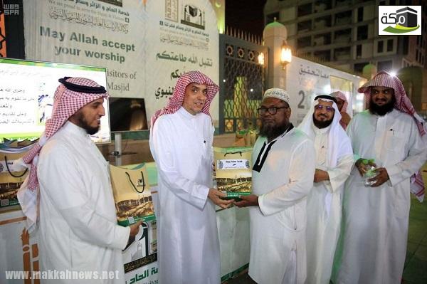 وبين مدير إدارة الأمن الفكري بالوكالة الشيخ عبدالله بن حمدان الحربي أن الحملة تأتي ضمن أعمال سلسلة حملات وكالة الرئاسة العامة لشئون المسجد النبوي ” خدمة الحاج والزائر وسام فخر لنا ” في نسختها الخامسة، وتهدف إلى تعزيز جوانب السلوك والأخلاق لدى الزائرين من حجاج بيت الله الحرام، وتوعيتهم بضرورة المحافظة على الأنظمة والتعليمات التي وضعتها الجهات الحكومية لخدمة ومصلحة جميع الزائرين والحجاج لتنظيم الحج والزيارة للحرمين الشريفين وذلك من خلال إهدائهم عدد من المطبوعات المتضمنة بيان مقاصد الحج والأخلاق التي ينبغي أن يكون عليها الحاج، ومنها الانشغال بالطاعة والعبادة والبعد عن كل ما يعكر صفو الحاج في أداء مناسك الحج ، موضحاً أنه جرى خلال الحملة استقبال الزوار والترحيب بهم في ساحات المسجد النبوي وتوزيع سلسلة من إصدارات إدارة الأمن الفكري المتعلقة بمقاصد الحج التي أعدها أصحاب الفضيلة أئمة الحرمين الشريفين .