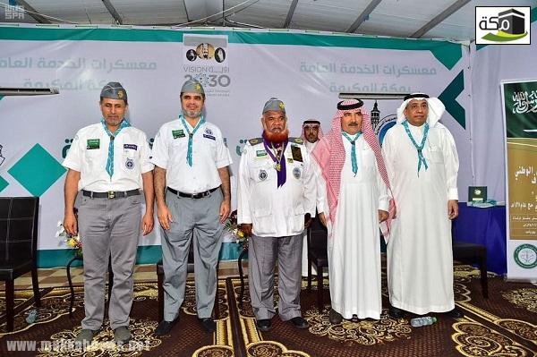 وتضمن الحفل الذي أقيم بهذه المناسبة كلمة للمشرف العام على المعسكرات في المملكة الدكتور عبدالله بن سليمان الفهد ،أكد فيها تشرف أبناء المملكة بخدمة ضيوف الرحمن التي تشهد تطوراً بفضل من الله تعالى ثم برعاية ودعم القيادة الحكيمة ، مشيراً إلى أن جمعية الكشافة سخرت 8000 مشارك من جميع القطاعات الكشفية في المشاعر المقدسة ومكة المكرمة والمدينة المنورة والمنافذ البرية والبحرية ومدن الحجاج .