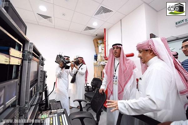 بعدها تفقد معاليه برج هيئة الإذاعة والتلفزيون واطلع على مايحويه من استديوهات تلفازية وإذاعية حديثة ، حيث وقف معاليه على استديوهات القنوات السعودية والإخبارية والثانيةوتابع آلية العمل التي تتم عبر أجهزة تقنية حديثة لنقل هذا الحدث العالمي ووقائعة .