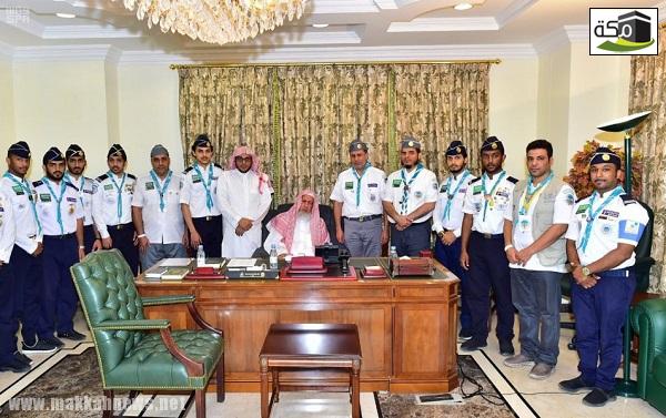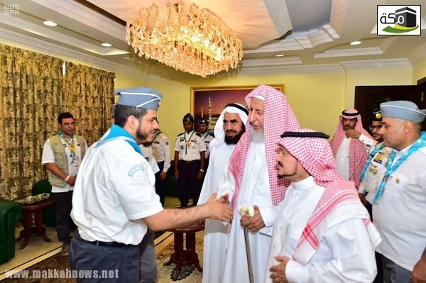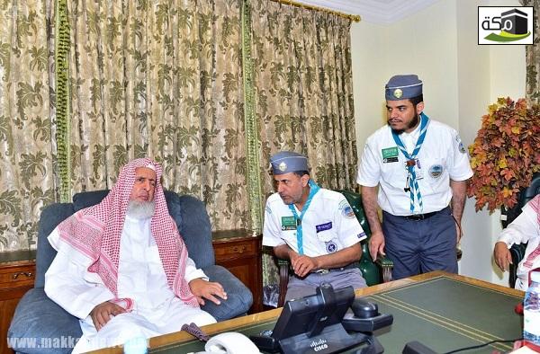 واستمع سماحته لشرح من المشرف العام عن أعمال الكشافة في الحج والمشاركة في عملية تفويج الحجاج وتدريبهم على إرشاد التائهين أو العمل في مساندة المستشفيات.