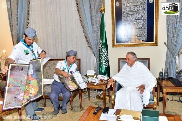 استقبل صاحب السمو الملكي الأمير خالد الفيصل مستشار خادم الحرمين الشريفين أمير منطقة مكة المكرمة رئيس لجنة الحج المركزية يوم أمس في مبنى الإمارة بمنى، وفد جمعية الكشافة العربية السعودية المشارك في معسكرات الخدمة العامة بمكة المكرمة والمشاعر المقدسة.