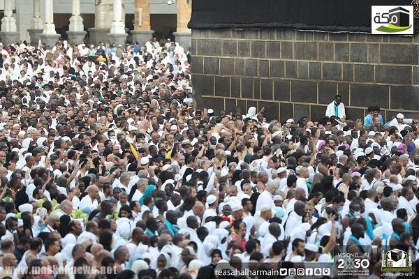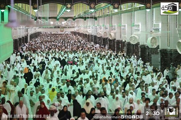 أدى جموع المسلمين صلاة عيد الأضحى المبارك بجنبات المسجد الحرام وسطحه وساحاته وسط منظومة متكاملة من الخدمات التي وفرتها الرئاسة العامة لشؤون المسجد الحرام والمسجد النبوي لحجاج بيت الله الحرام والتي استعدت لها من الصباح الباكر لتأمين أفضل الخدمات كي يؤدوا عبادتهم بكل يسر وسهولة في أجواء تملؤها الروحانية والطاعة والأمن والأمان , واستمع حجاج بيت الله إلى خطبة العيد التي ألقاها إمام وخطيب المسجد الحرام فضيلة الشيخ الدكتور ماهر المعيقلي التي استهلها بالحمد والثناء على الله عز وجل وشكره على ما منَّ على المسلمين من منن عظيمة وقال: