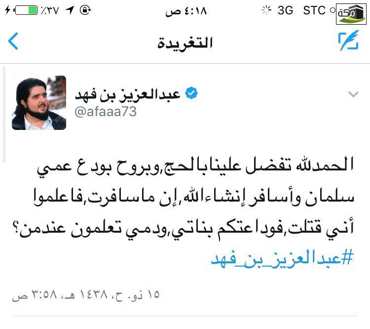 جاء هذا بعد التغريدة الغريبة التي تم نشرت وذكر فيها ” إحتمالية تعرضه للقتل قبل سفره ” .. وهذا ما جعل نشطاء السوشيال ميديا يتداولونها مبدين إستغرابهم لمحتواها .. كما علق آخرون عليها بأن وقتها غير مناسب وغريب فقد تزامنت مع فوز المنتخب وتأهله لكاس العالم ٢٠١٨ .