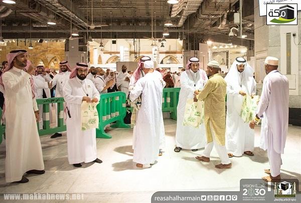 ضمن حملة (خدمة الحاج والزئر وسام فخر لنا) في موسمها الخامس, استأنفت الرئاسة العامة لشؤون المسجد الحرام والمسجد النبوي توديع ضيوف الرحمن بالطيب والهدايا , بمشاركة كل من سعادة مدير إدارة العلاقات العامة بالمسجد الحرام الأستاذ راجح الحارثي, وسعادة مدير إدارة العمليات الأستاذ عبدالحفيظ الثبيتي, وسعادة مدير إدارة النظافة والفرش بالمسجد الحرام المهندس محمد الوقداني, وسعادة مدير إدارة سقيا زمزم المهندس أسامة الحجيلي, وسعادة ممثل إدارة الإعلام والاتصال الأستاذ نايف الذبياني.