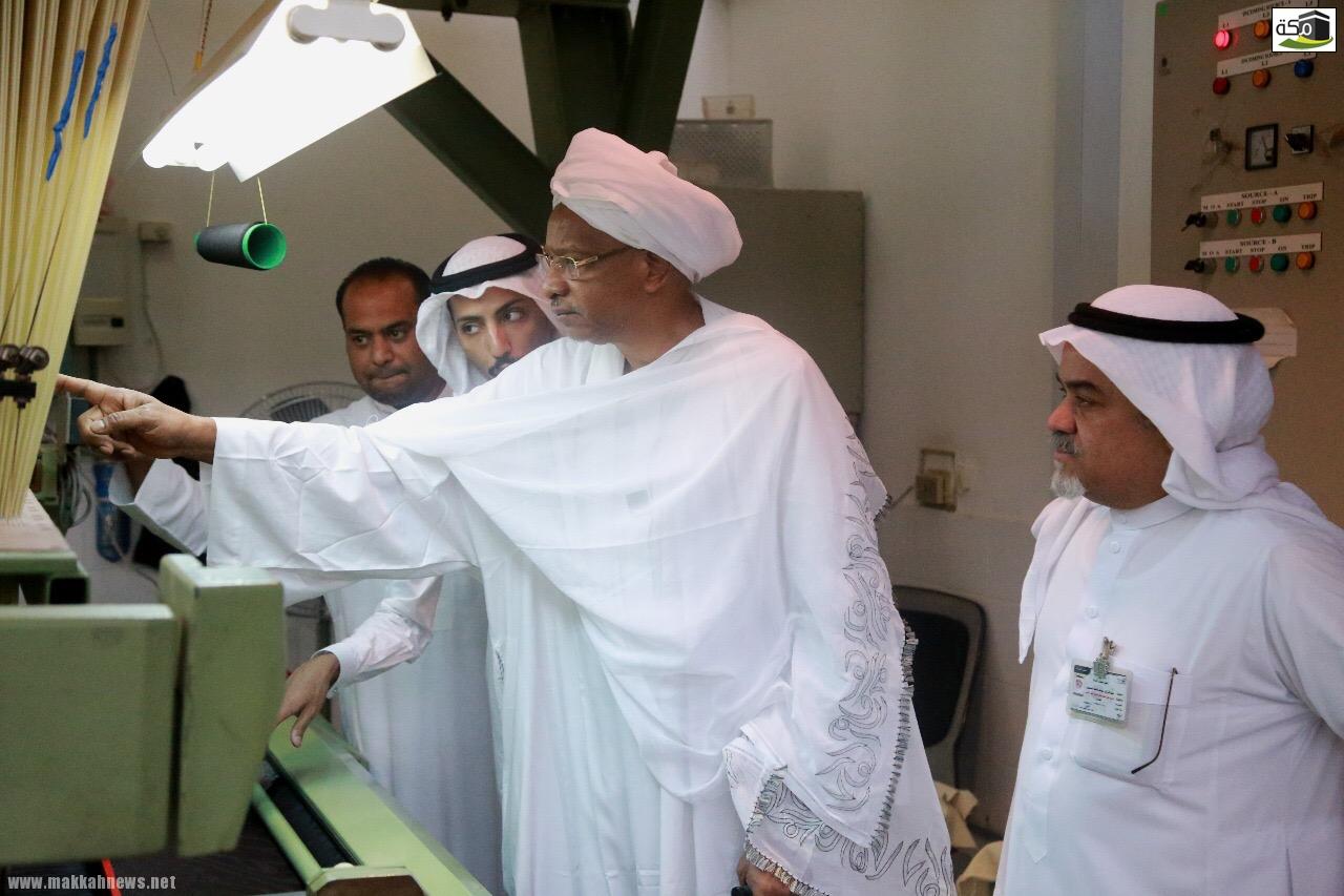 فيما أخذ الوفد في جولة على أقسام المجمع المختلفة وقدم له عرضاً موجزاً عما يحتويه ومراحل تصنيع كسوة الكعبة المشرفة ومخرجاته الأخرى من الأعلام الرسمية والشعارات الحكومية.