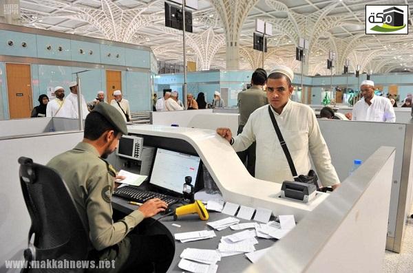 “عمل دؤوب” في صالة مغادرة المسافرين من مختلف الشركات الناقلة التي تبُاشر استقبال ضيوف الرحمن من مختلف الجنسيات من خلال “الكاونترات” الخاصة بها وإنهاء إجراءات سفرهم وترحيل أمتعتهم بإشراف تام من الشركة المشغلة لمطار الأمير محمد بن عبدالعزيز الدولي التي حرصت على توزيع فرقها الخدمية والإشرافية بمختلف مرافق المطار لتقديم الخدمات اللازمة للمسافرين.