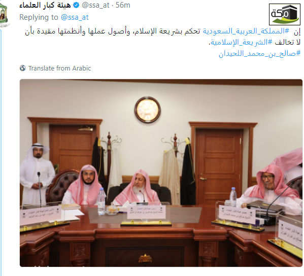 وغرد الحساب: “إن المملكة العربية السعودية تحكم بشريعة الإسلام، وأصول عملها وأنظمتها مقيدة بأن لا تخالف الشريعة الإسلامية”.