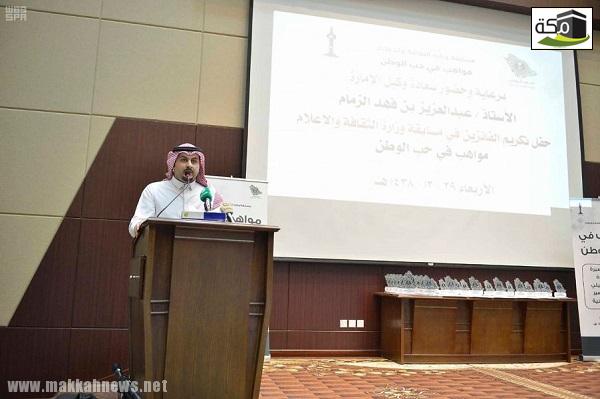 وألقى عدد من الشعراء قصائد فصيحة ونبطية بمناسبة اليوم الوطني الـ “78” للمملكة العربية السعودية وسلم ” الزمام” الفائزين والفائزات بدروع تذكارية ومبالغ مالية على الفائزين الذي بلغ عددهم 18 فاز وفائزة في كافة المجالات المقرة.