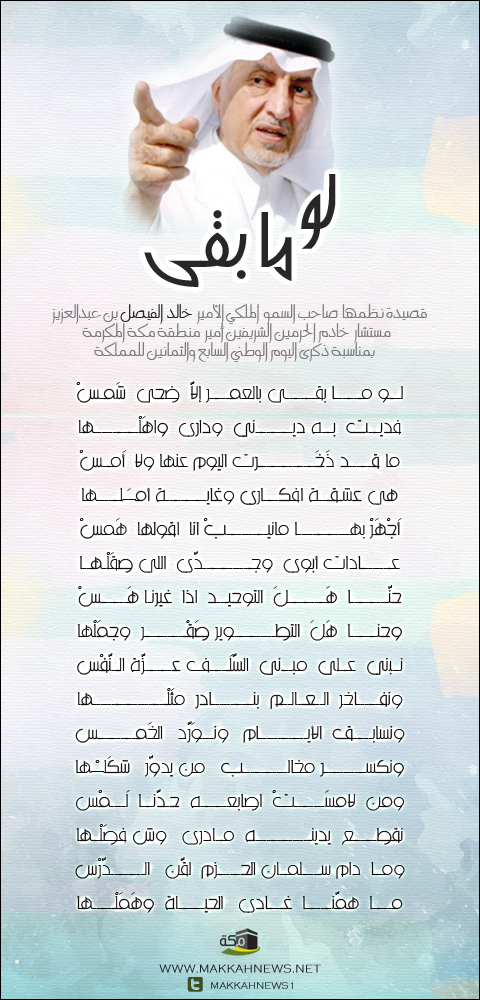 لو ما بقى عنوان قصيدة نظمها صاحب السمو الملكي الأمير خالد الفيصل بن عبدالعزيز مستشار خادم الحرمين الشريفين أمير منطقة مكة المكرمة بمناسبة ذكرى اليوم الوطني السابع والثمانين للمملكة :