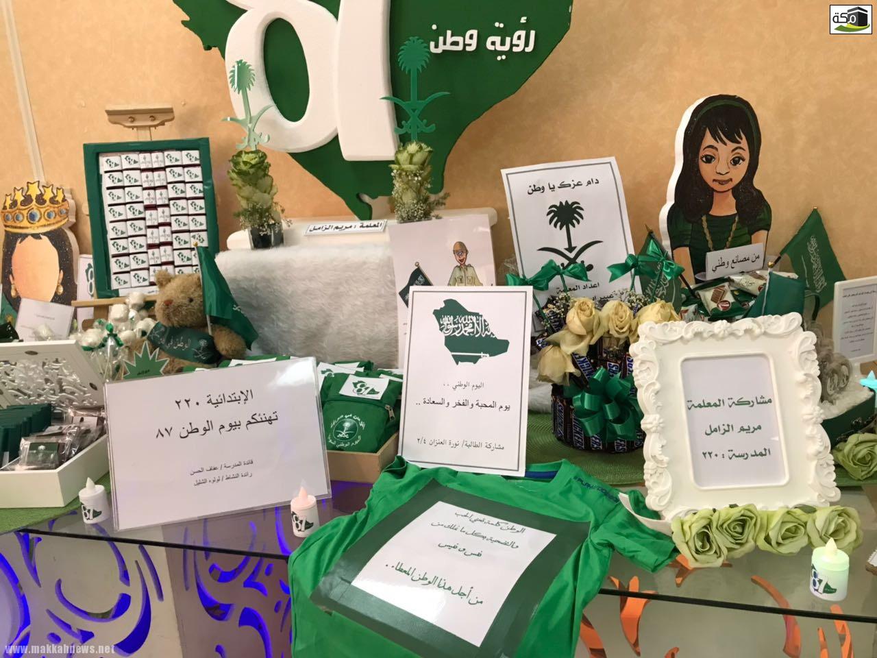 ضمن احتفالات المملكة العربية السعودية باليوم الوطني ٨٧ وبرعاية مديرة مكتب التعليم بالشفا أ/نوره الكنعان وبحضور المساعدة للشؤون الادارية الاستاذة /جميلة الغامدي ..اقام المكتب يوم الخميس الموافق8/1/1439هـ ..احتفاءه باليوم الوطني ٨٧ من اعداد وتنظيم وحدة نشاط الطالبات وبأشراف المساعدة لشئون الطالبات الدكتورة /مها الدوسري ورئيسة الوحدة أ /وردة العزاز وبمشاركة مشرفات وحدة النشاط ومجموعة من المدارس التابعه للمكتب و رائدات النشاط لهم حيث نظم المعرض بشكل أركان لمجموعه من المدارس المشاركة تم فيها عرض اهم المبادرات المتميزة للطالبات من عروض ولوح ومجسمات وحملات تطوعية وعرض فيديو لمنجزات ومآثر وطننا الحبيب لغرس الحب والولاء له.