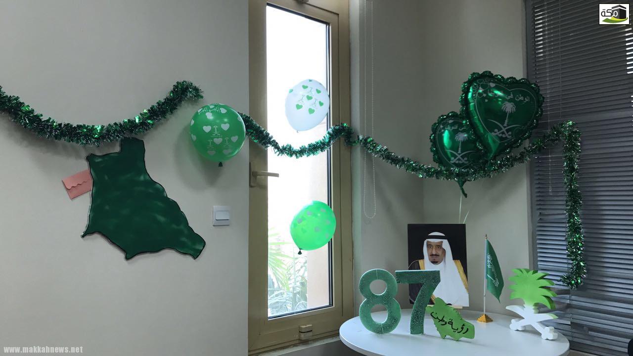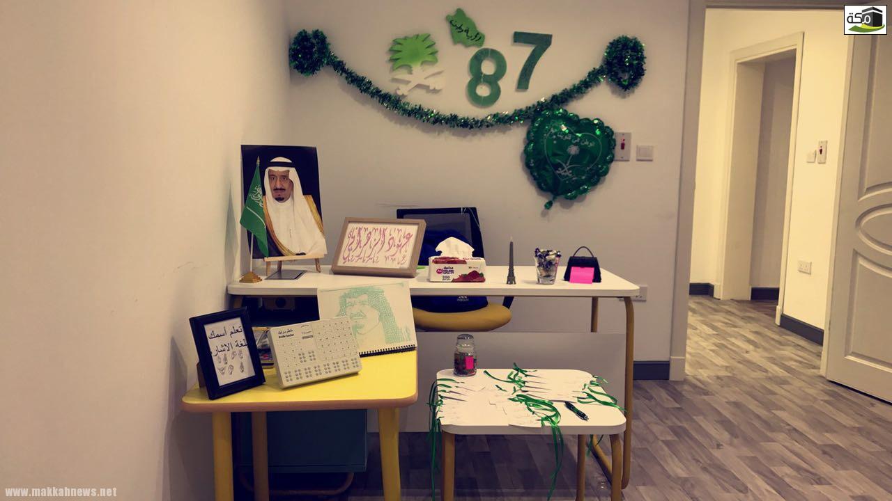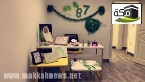 فقد تم الاستعانة بمجسمات بارزه من ( خريطة المملكة وضع عليها الشعار “رؤية وطن ” و رمز السيفين والنخله و87 عام ) حتى تتناسب مع الكفيفات ويتمكنوا من التعرف عليها وتم وضع اعلام وصورة للملك