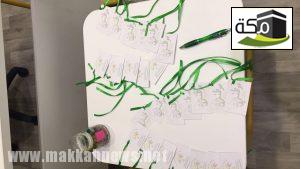 ركن الكتابة على معلم برايل يتم فيه محاول كتابه كلمه ضمن البطاقات المختارة والمدون عليها ( وطن – رؤية ٨٧ – مكة- الرياض – جدة ) وذلك للتعبير عن حب الوطن بطريقة مختلفه