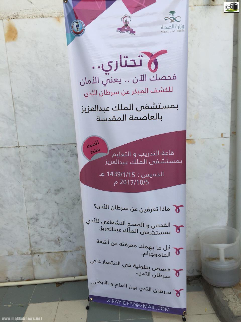 ثم قامت أخصائية الحماية من الإشعاع السيدة : تغريد شعيب عن كل مايتم معرفته عن اشعة الماموجرام وتصحيح المفاهيم عن مايشيع بين السيدات من خطورة هذا الإشعاع ثم قامت سيدتان مصابتان بسرطان الثدي وشرحت تجربتهما والشفاء منه مابعث الأمل في نفوس بعض من أبتلاهن الله !