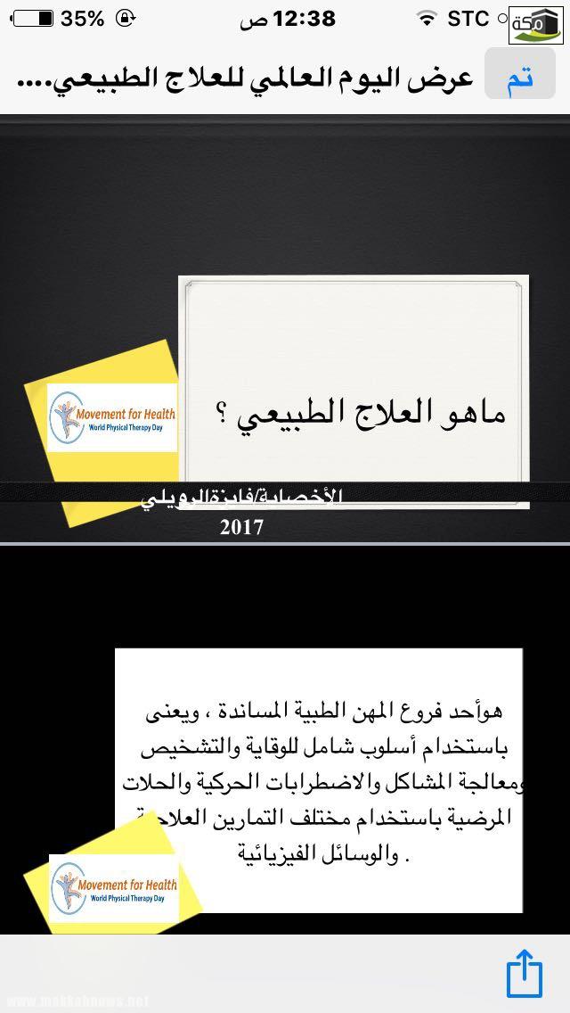 وتم تتفيذ من قبل موظفات قسم العلاج الطبيعي وبإشراف الأخصائيه: فايزه الرويلي