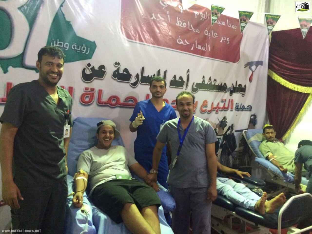 ضمن فعاليات الإحتفال باليوم الوطني السابع والثمانون، نظم مستشفى أحد المسارحة العام حملة التبرع بالدم تحت شعار ( دمي لوطني ) مساء أمس الخميس وذلك بساحة الاحتفالات بالمحافظه.