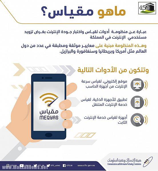 يذكر أن “مقياس” عبارة عن منظومة أدوات مختلفة للمستخدمين توفر قياس لجودة الإنترنت المقدمة لهم وتمكن من متابعة معدلات مستوى الجودة على فترات زمنية مختلفة بشكل إسبوعي، أو شهري، أو سنوي، وذلك بناء على معايير فنية معتمدة وموثوقة يتبناها العديد من منظمي قطاع الاتصالات في العالم مثل الولايات المتحدة الأمريكية، والمملكة المتحدة، وسنغافورة، والبرازيل وغيرهم.