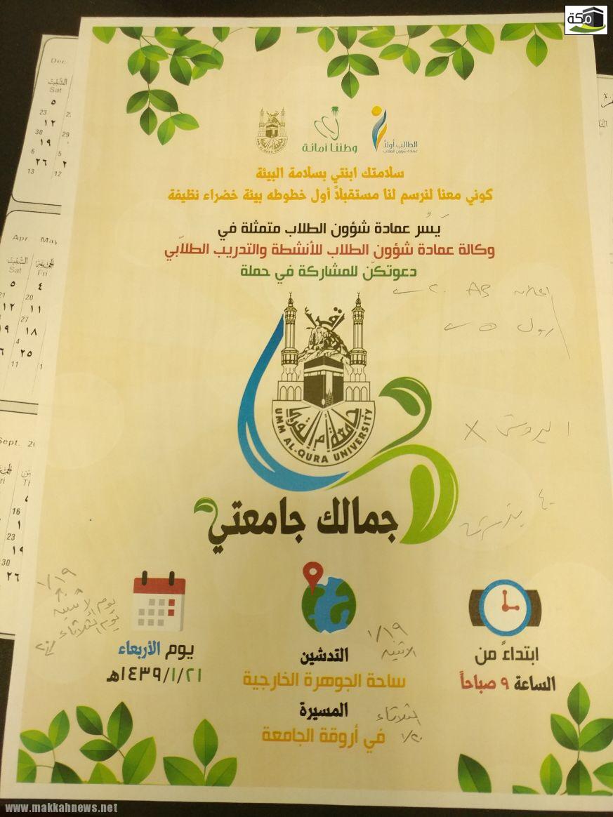 تم تدشين حملة “جمال جامعتي” بجامعة أم القرى صباح يوم أمس الإثنين الموافق 1/19 واستمرت لصباح اليوم