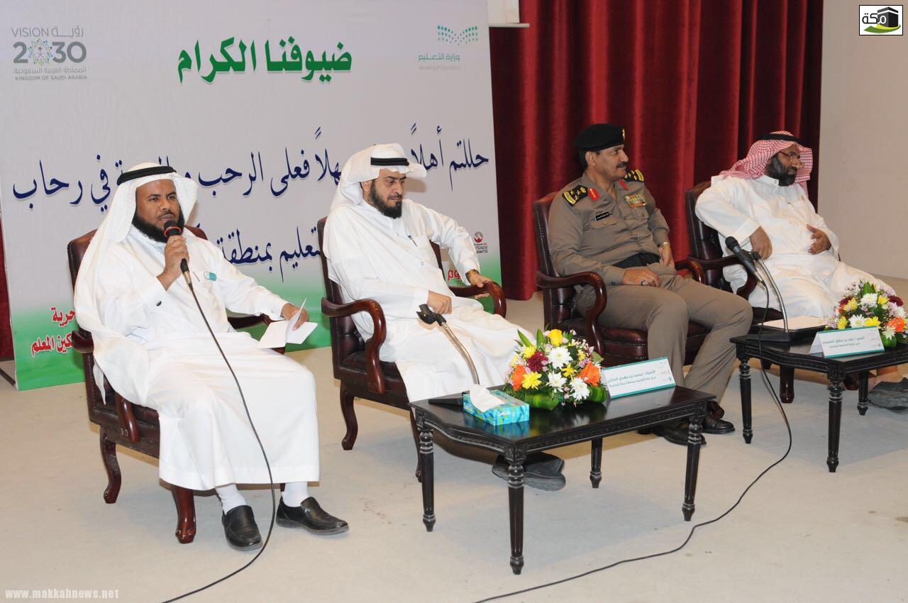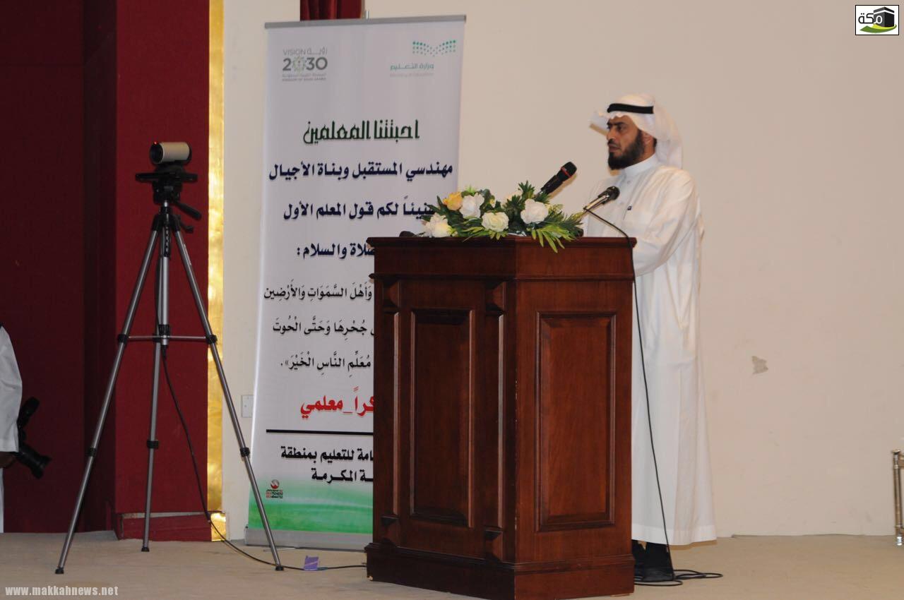 وقد شارك في الاحتفال كل من العميد فهد العصيمي مدير شرطة العاصمة المقدسة والذي قال في محور أثر المعلم في البناء الفكري والاجتماعي المعتدل للطالب أن دور المعلم كبير ومهم في رفع الوعي والثقافة لدى الطلاب ليكونوا رجال الغد وبناة مستقبله.