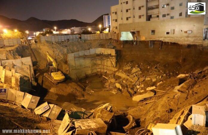 وقال المتحدث الرسمي للإدارة العامة للدفاع المدني بمكة المكرمة الرائد نايف الشريف، أنه ورد بلاغ أمس الجمعة، يفيد وقوع حادث انهيار بحي الشهداء بجوار مطعم الطازج.