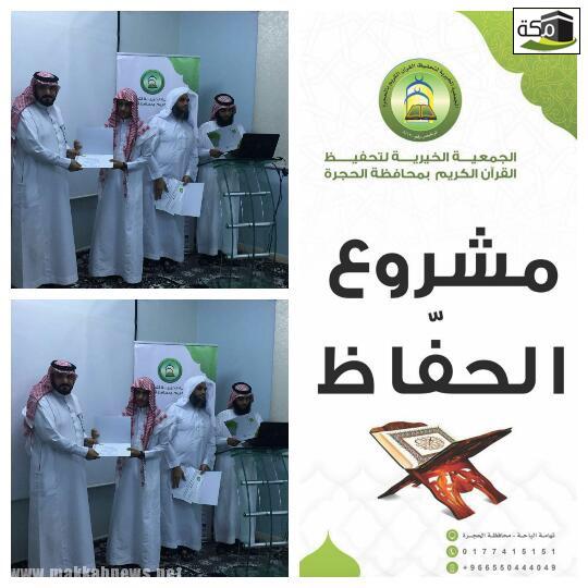 دشن محافظ الحجرة الدكتور فيحان بن حمود العتيبي مشروع الحفاظ بالجمعية الخيرية لتحفيظ القرآن الكريم بمحافظة الحجرة مساء اليوم الثلاثاء ١٤٣٩/١/٢٧هـ والذي يهدف إلى تخريج حفاظ كتاب الله خلال عامين كاملين وحضر الحفل الشيخ سعد الطيار والشيخ أحمد بن سعد الطيار ورؤساء الجهات الخيرية وأولياء امور الطلاب وجمع من الآهالي والأعيان .