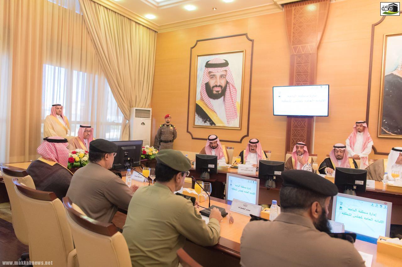 وتطلع سمو أمير الباحة في كلمته خلال الاجتماع إلى الخروج بتوصيات تخدم الصالح العام ، وذلك وفق ما ورد في نظام المناطق ولائحتها التنفيذية التي تنص على عقد مثل هذه الاجتماعات التي تأتي تنفيذاً لتوجيهات سيدي خادم الحرمين الشريفين الملك سلمان بن عبدالعزيز آل سعود وسمو ولي عهده الأمين ” حفظهما الله ” ، وتؤكد على أمن ورفاهية المواطن ورفع مستوى الخدمات والأداء من الجوانب الأمنية والحقوقية والتنموية والتطويرية.